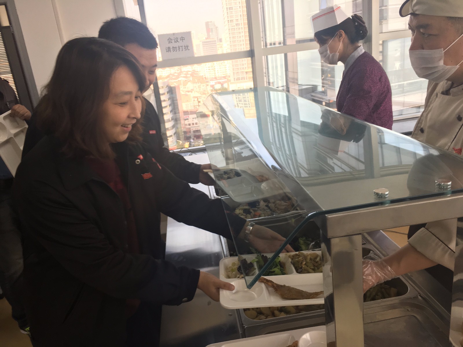 tqb谈球吧集团党委本着“以人为本,关爱职工”的管理理念,为切实解决集团英德隆大厦办公区域无餐厅,在此办公的集团与崂矿人员无法集中就餐的困难,在办公场地非常紧张的情况下,创造条件建设改造了会议室餐厅,精挑细选配送商为员工们提供安全放心、美味可口的午餐。